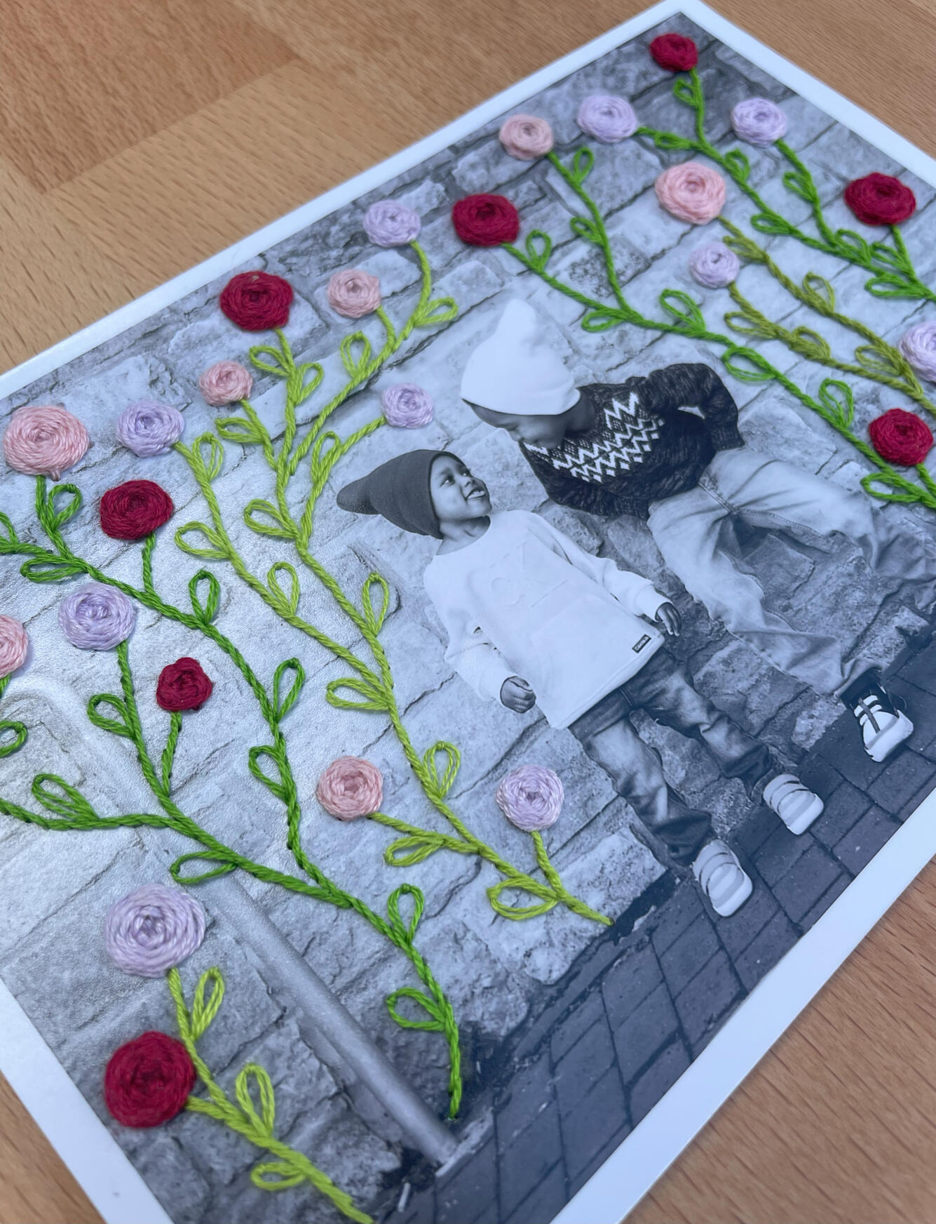 Broderie sur photo ou carte postale