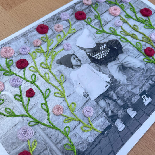 Broderie sur photo ou carte postale